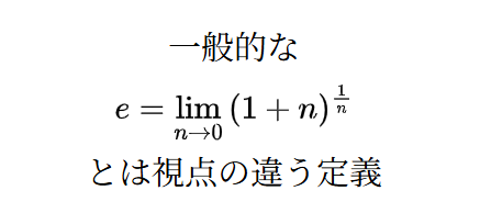 となる.以上の通り,高等学校流のネイピア数の極限による表示が得られ,確かに微分方程式による定義はこれと同値であることが確認できた.
